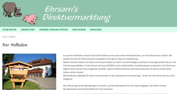 Im Hofladen kann man hier fränkische Wurstspezialitäten (Frischwurst und Dosenwurst), Rindfleisch, Schweinefleisch und Schinken kaufen.