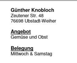 Marktverkauf / Marktbeschicker / Straßenverkauf Ubstadt-Weiher