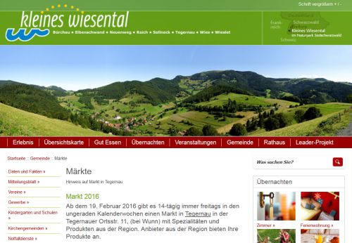 - samstags: Lörrach auf dem Hauptmarkt und auf dem Wochenmarkt in Schopfheim